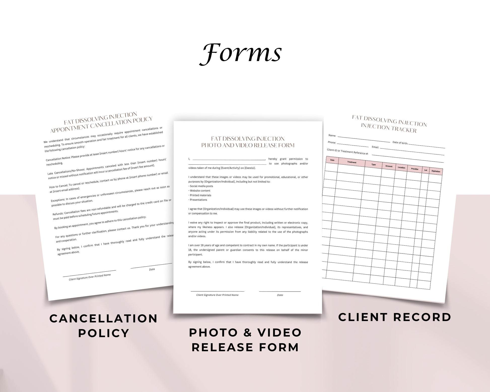 Fat Dissolving Injection Form, Consultation form, Client consent form, Loyalty Card, Business Card, Editable Canva templates, Aftercare Card