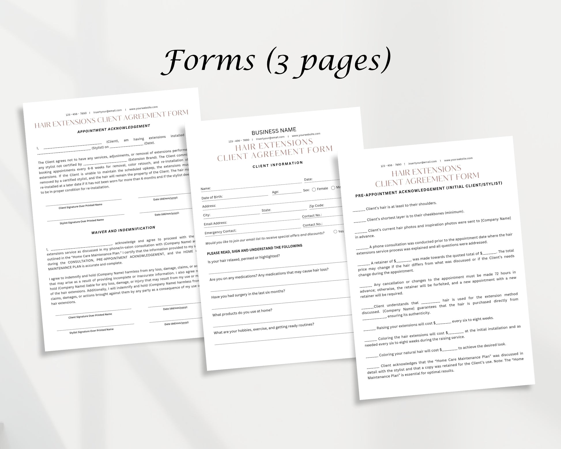 Hair Extensions Form, Consultation form, Client consent form, Editable Canva templates