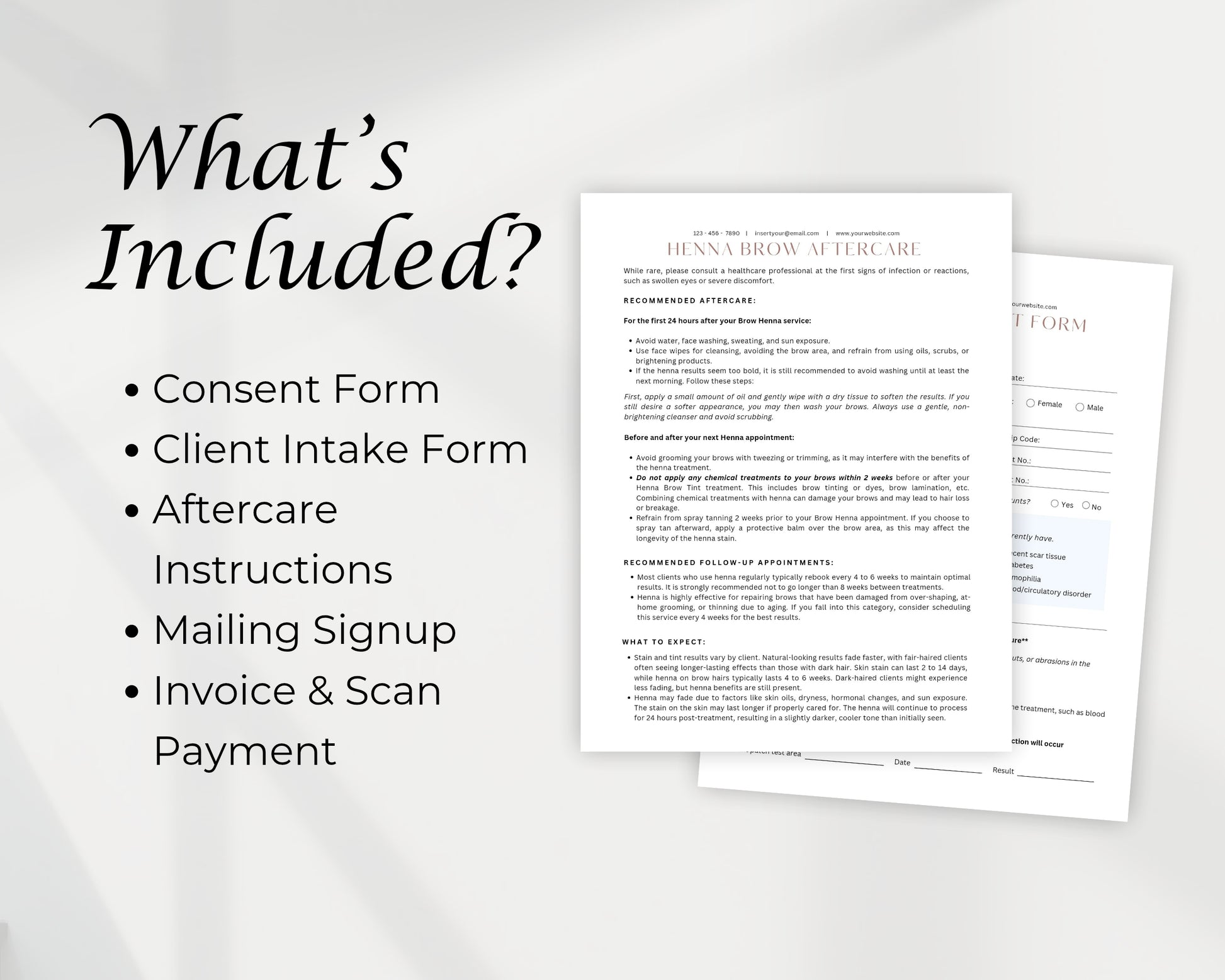Henna Brow Form, Consultation form, Client consent form, Editable Canva templates