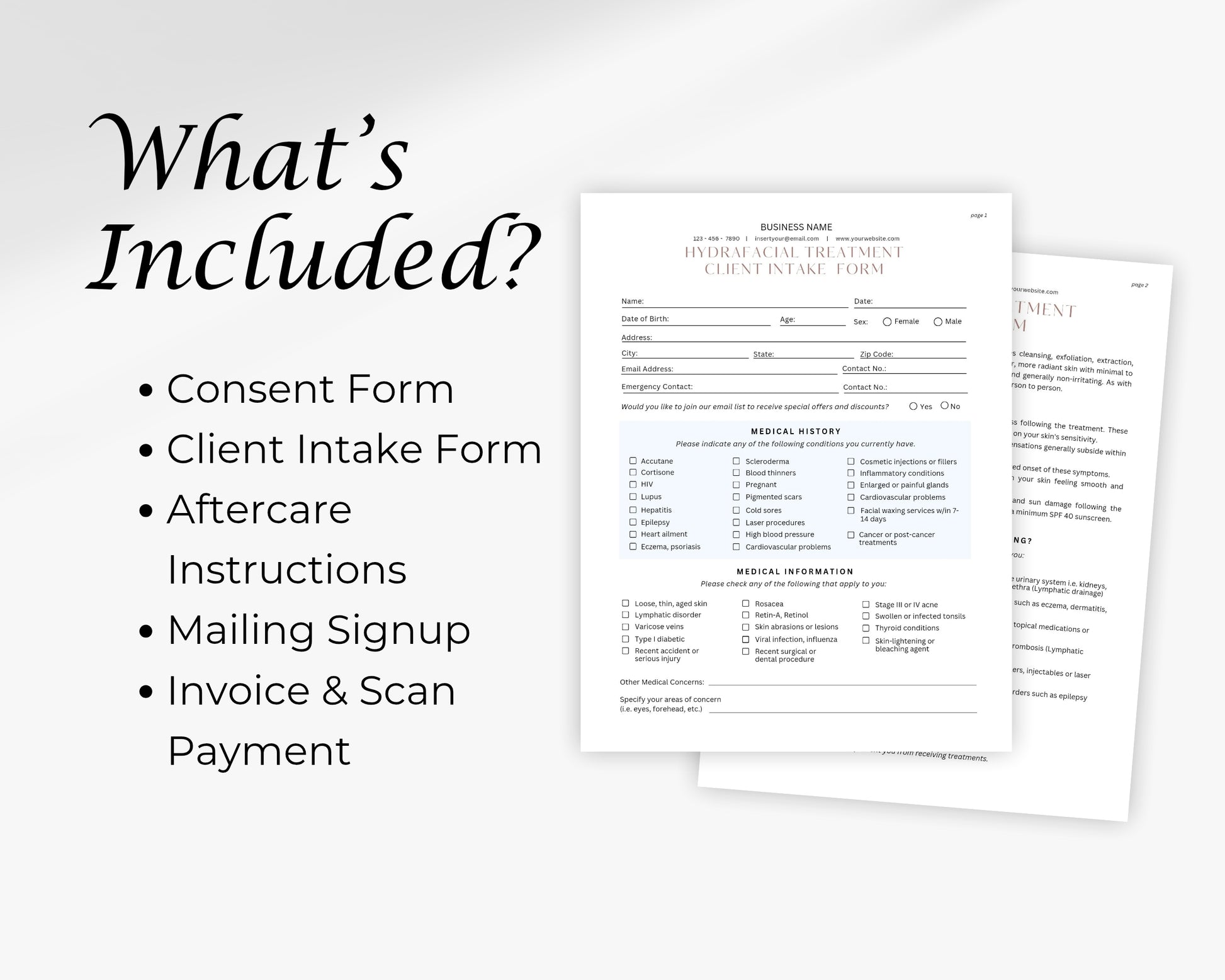 Hydrafacial Form, Consultation form, Client consent form, Editable Canva templates