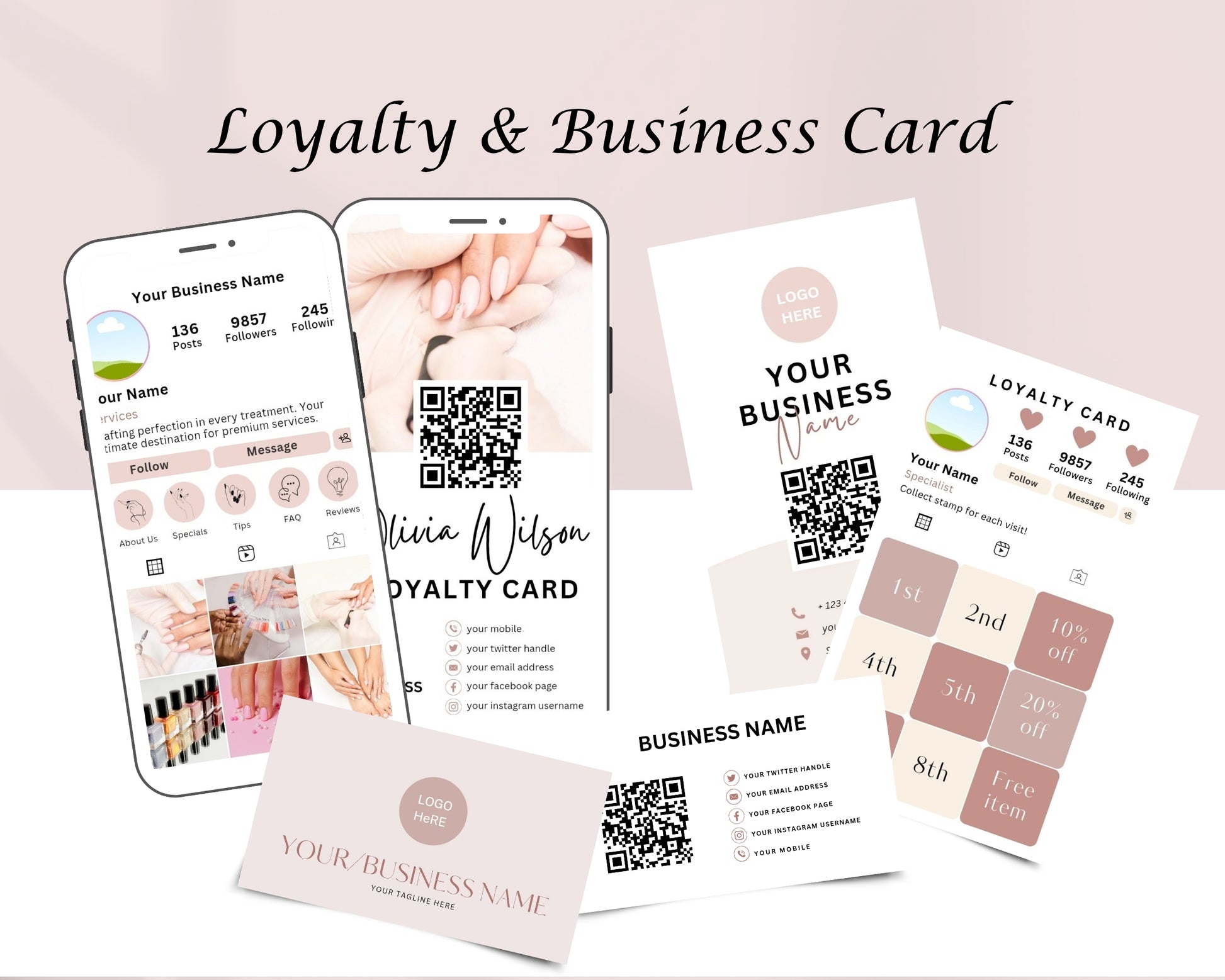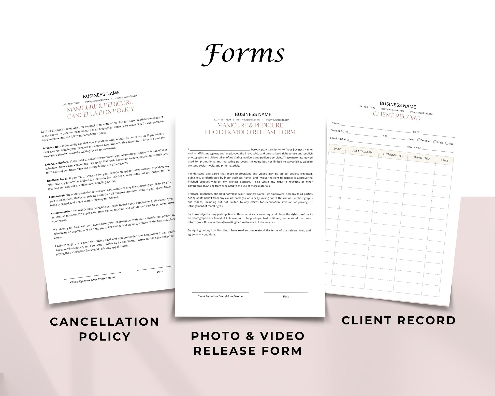 Manicure & Pedicure Business Forms, Consultation form, Client consent form, Loyalty & Business Card, Edit in Canva