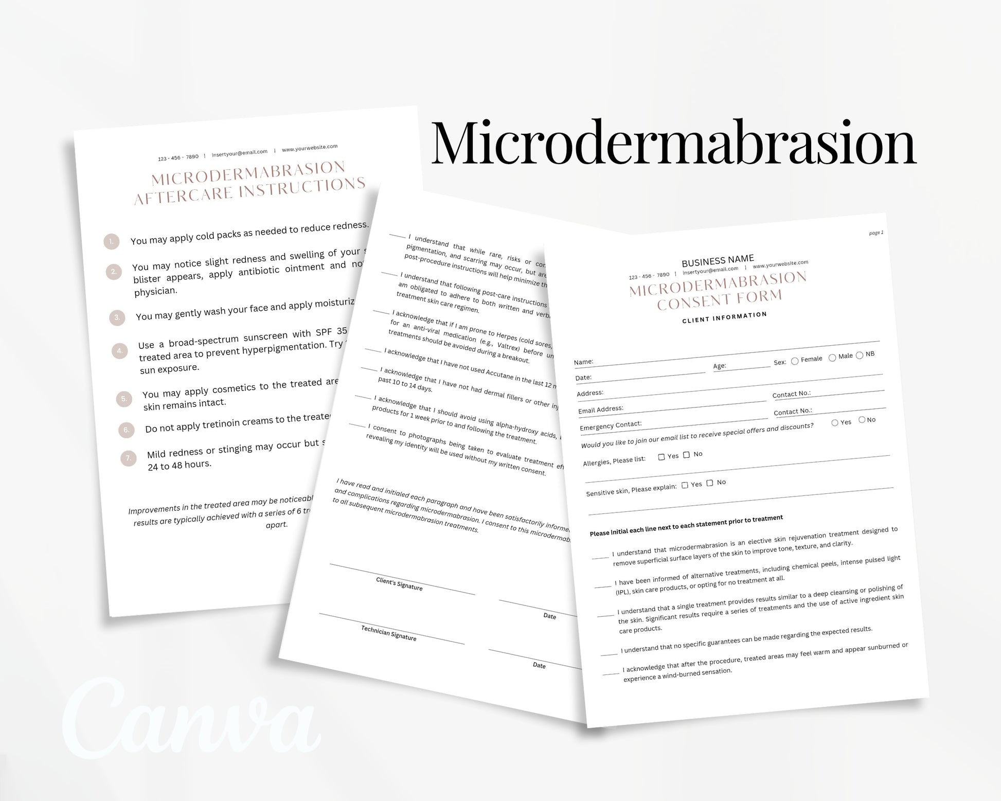Microdermabrasion Form, Consultation form, Client consent form, Editable Canva templates