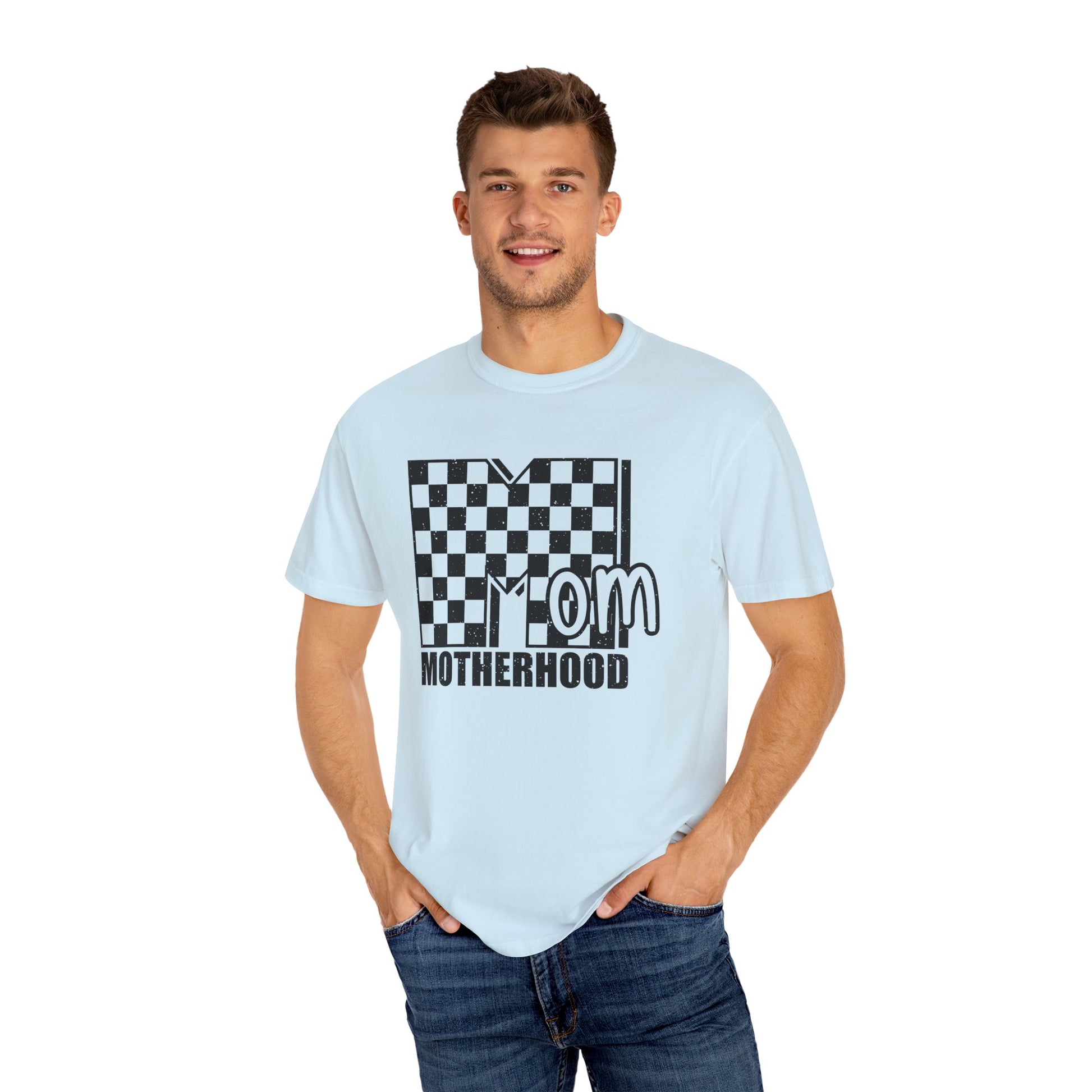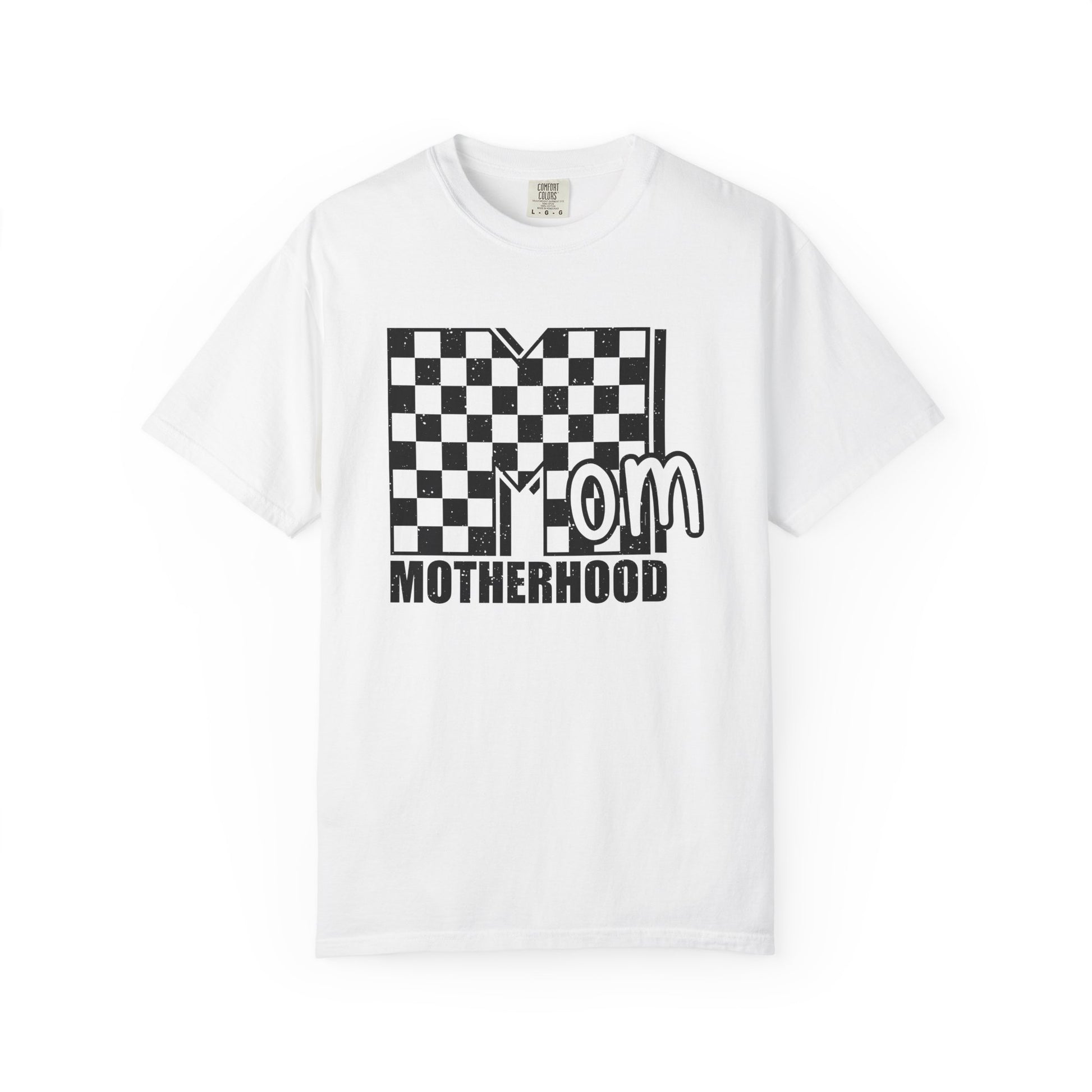 Mom Life Garment-Dyed T-shirt, Unisex Tee, Mother's Day Gift, Casual Wear, Checkerboard Pattern, Comfortable Mom Shirt