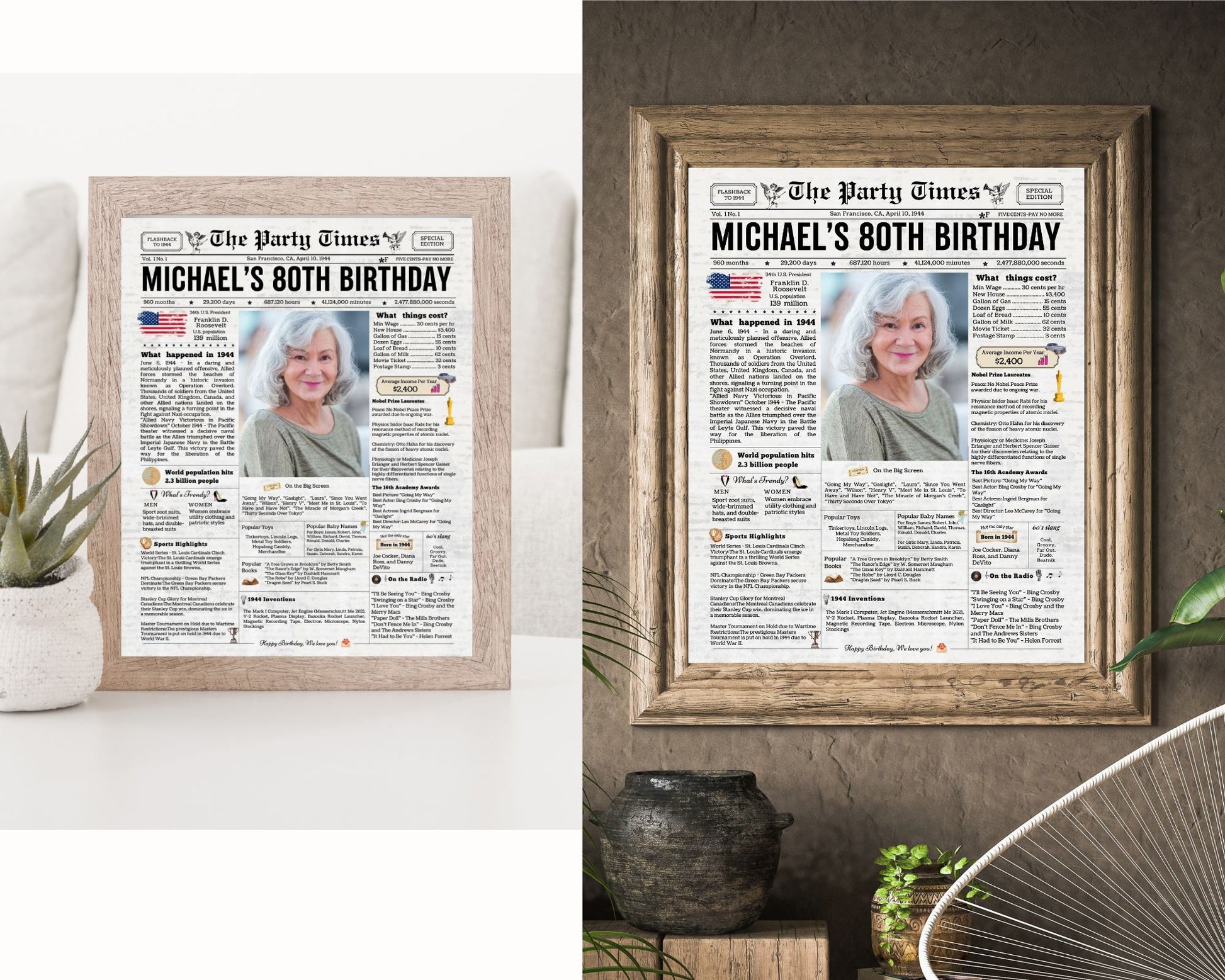 Personalized Newspaper Poster, 25th-80th, Perfect for Birthday and Anniversary Gifts, Made-to-order download