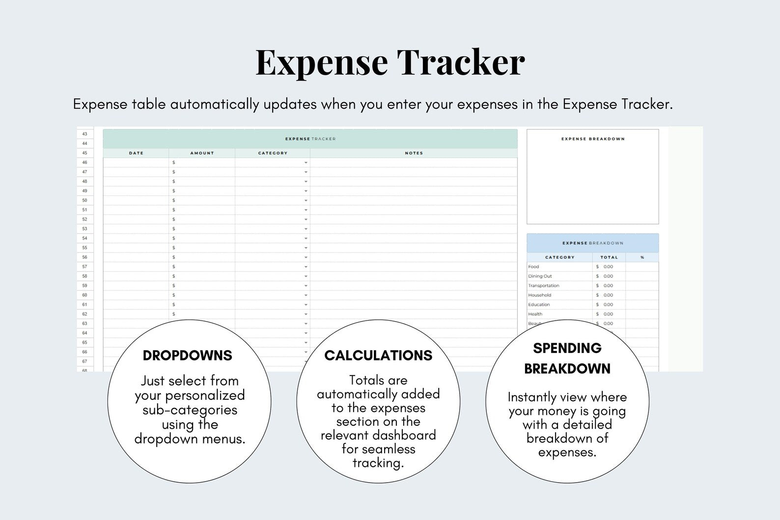Simple Budget Spreadsheet Template, Annual Budget, Monthly Tracker, Income and Expenses Tracker, Google Sheets - 1 tab