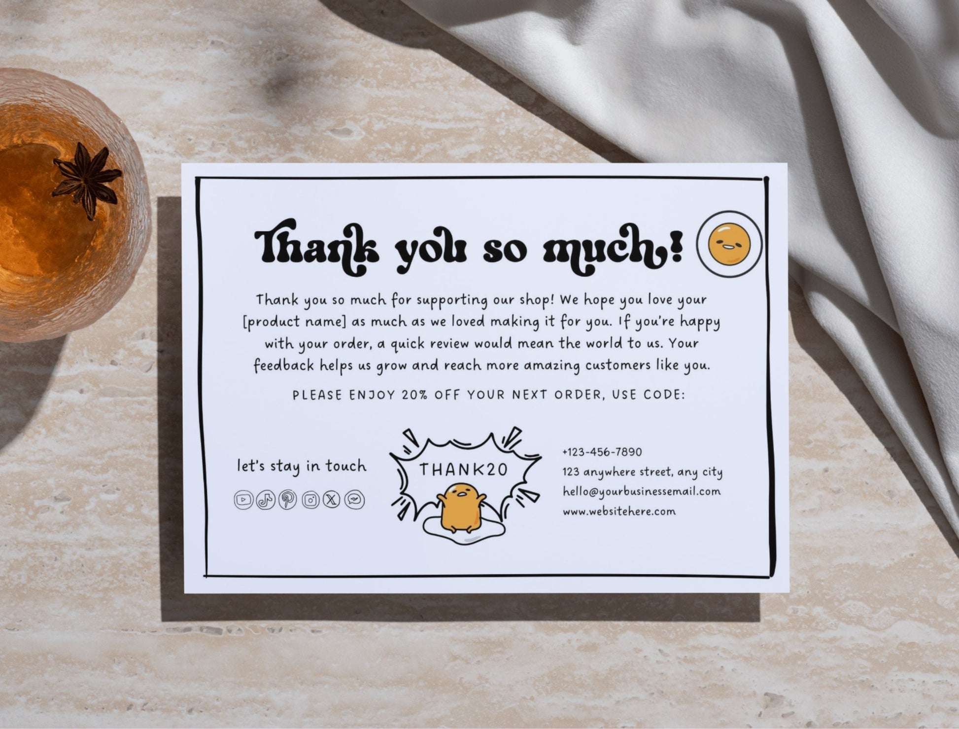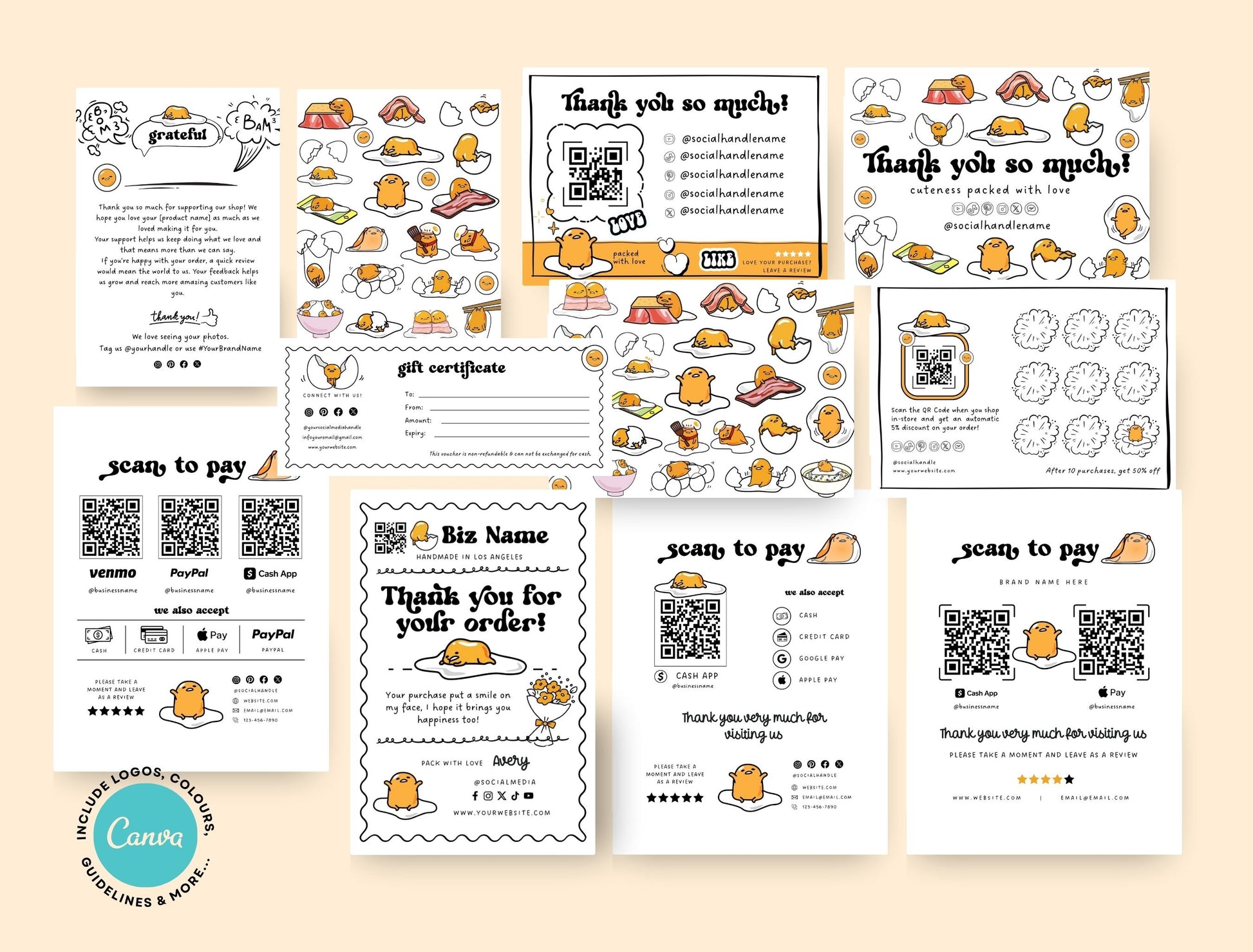 Small Business Printable Canva Templates – Thank You & Loyalty Card, Gift Certificate, QR Code Payment Gudetama Playful Fun Theme
