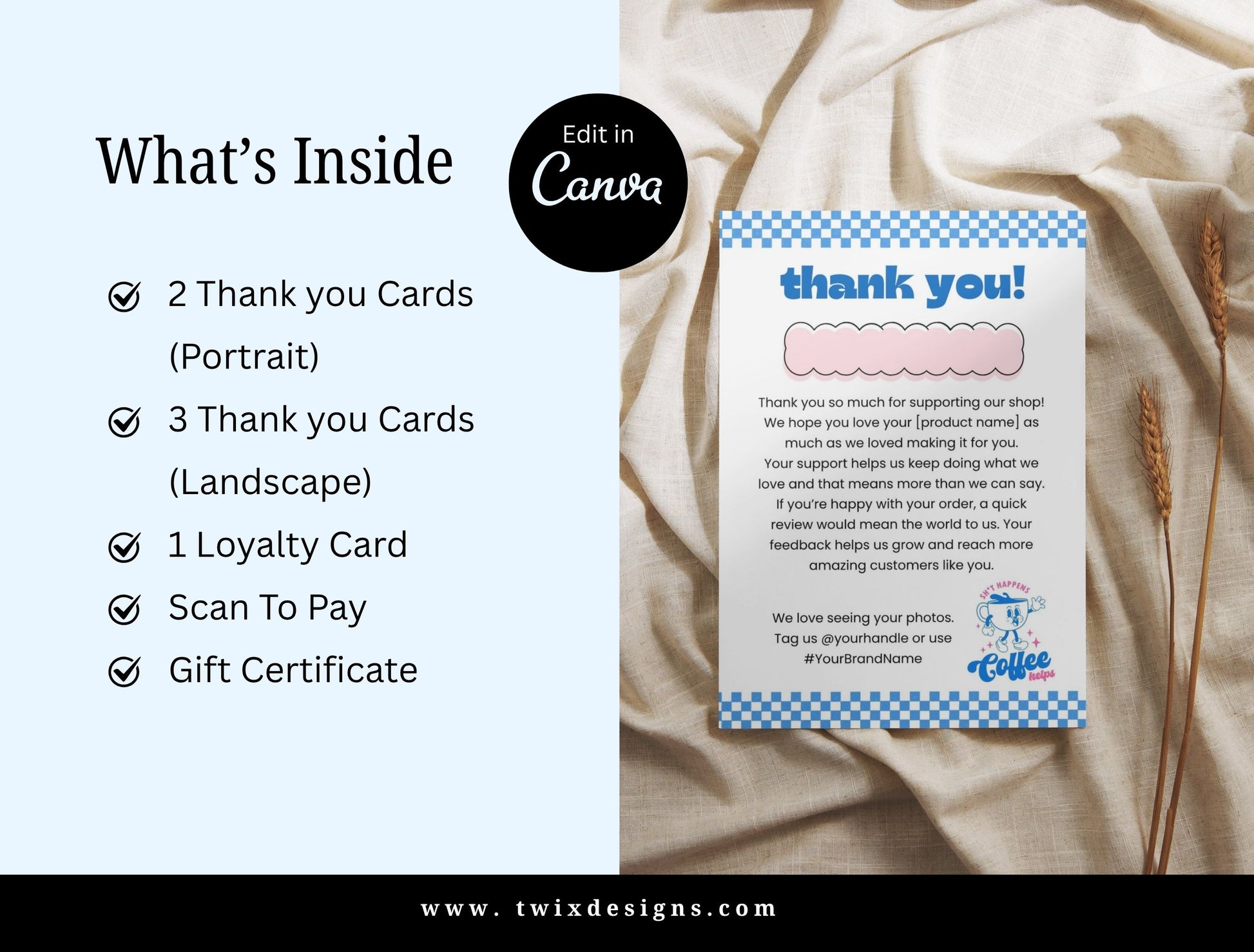 Small Business Printable Kit Canva Templates – Thank You Card, Loyalty Card, Gift Certificate, QR Code Payment JAva CafeTheme