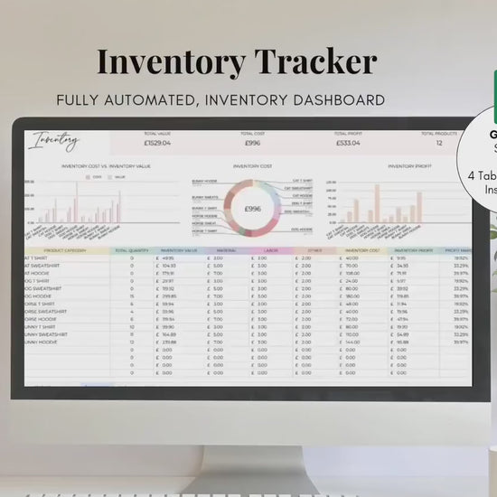 Effortlessly track your inventory and get visual insights into your business’s performance. The spreadsheet is perfect for managing stock, calculating product costs, and visualizing profits, all in one place.
