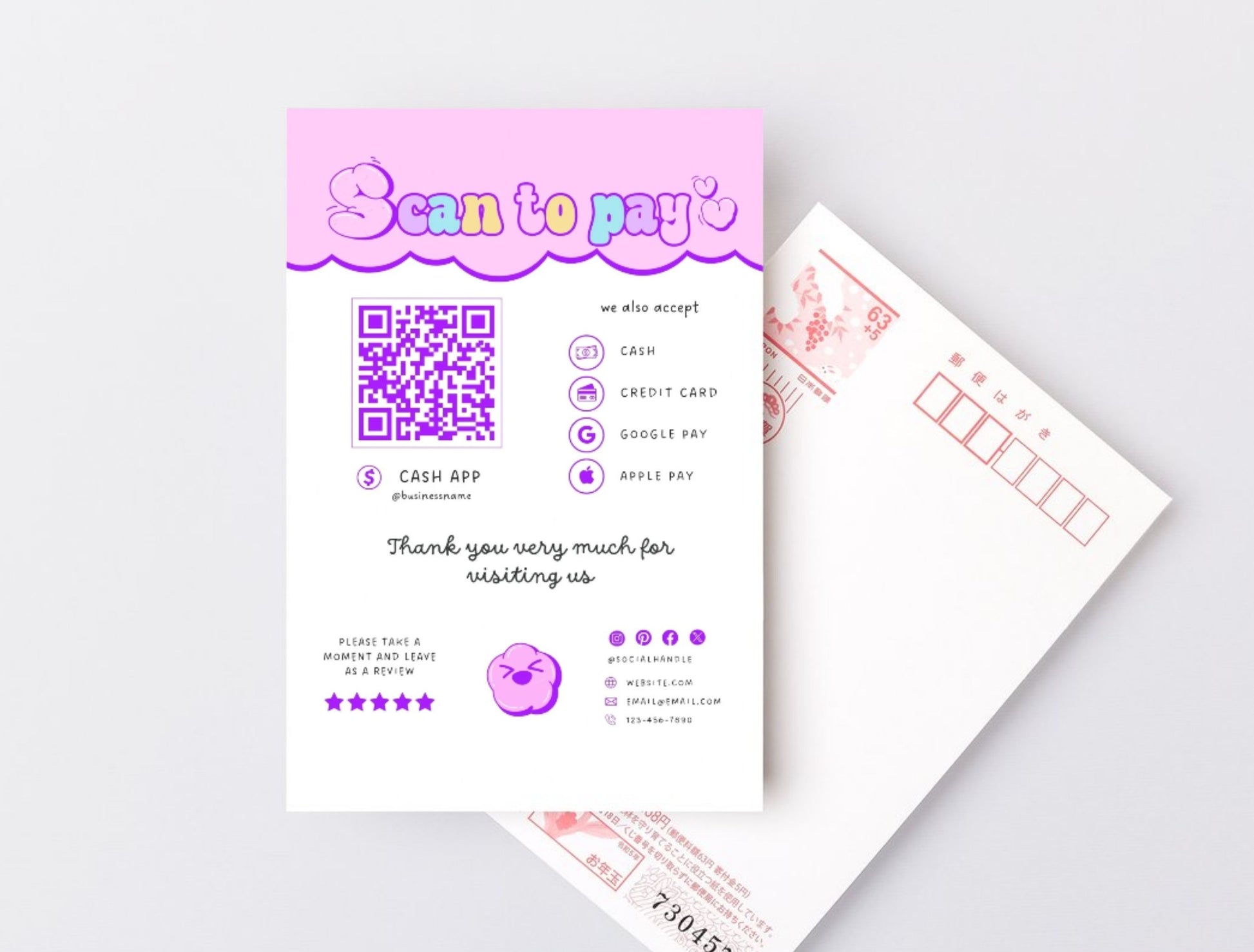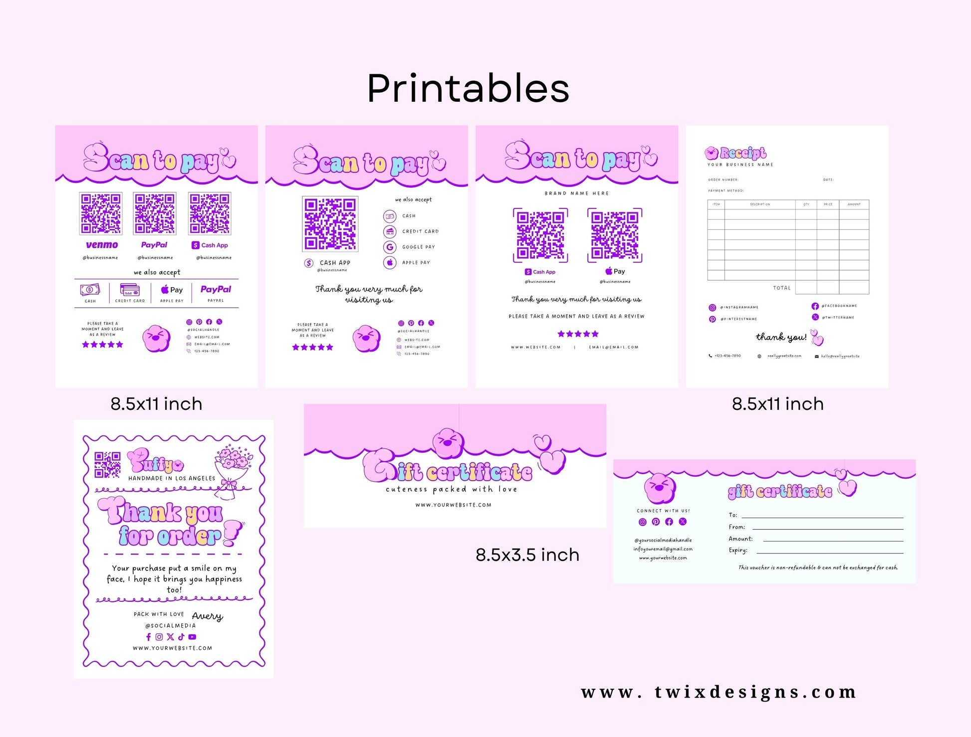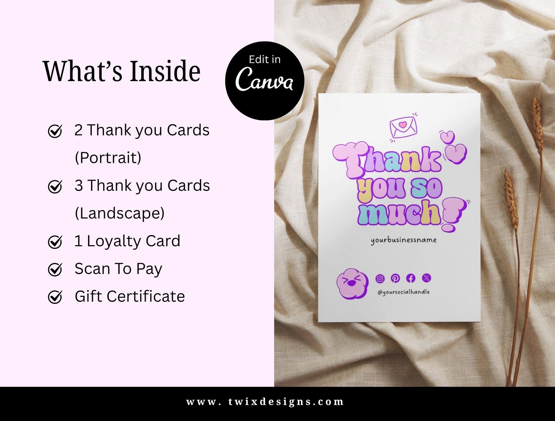 Small Business Printable Kit Canva Templates – Thank You Card, Loyalty Card, Gift Certificate, QR Code Payment Puffy Theme